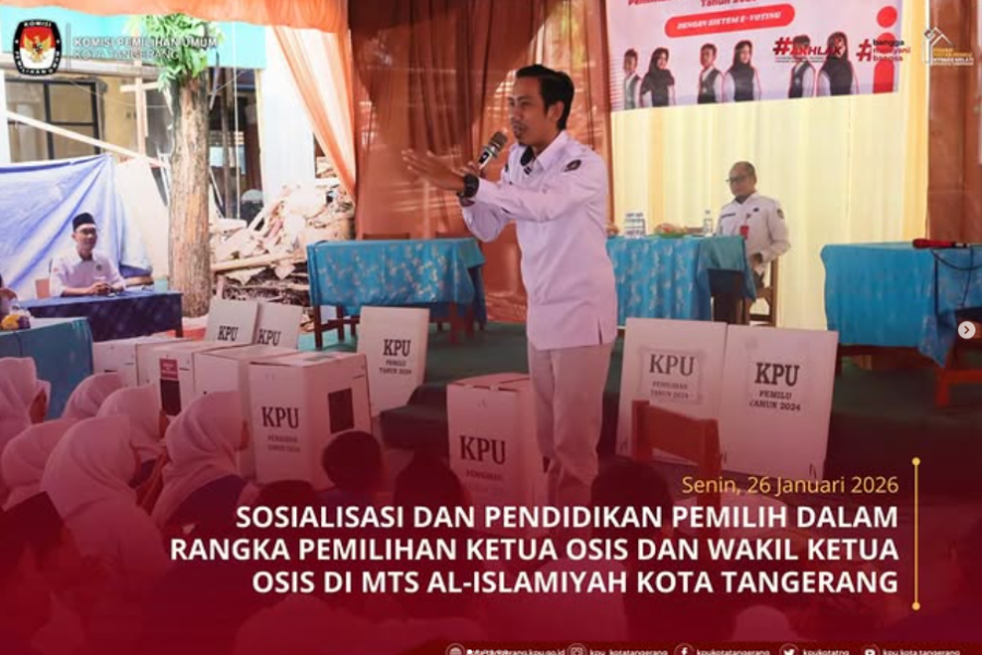 Kota Tangerang, Senin (26 Januari 2026) — Komisi Pemilihan Umum (KPU) Kota Tangerang melaksanakan kegiatan Sosialisasi dan Pendidikan Pemilih dalam rangka pemilihan Ketua dan Wakil Ketua OSIS di MTs Al-Islamiyah Kota Tangerang. Kegiatan ini bertujuan untuk meningkatkan pemahaman demokrasi serta menumbuhkan kesadaran berpartisipasi bagi pelajar sebagai pemilih pemula. Dalam kegiatan tersebut, KPU Kota Tangerang memberikan edukasi terkait tahapan pemilihan, tata cara memberikan suara yang benar, serta pentingnya menjaga nilai-nilai kejujuran dan integritas dalam proses demokrasi. Materi disampaikan secara interaktif sehingga mudah dipahami oleh para siswa. Para peserta tampak antusias mengikuti rangkaian kegiatan, mulai dari sesi pemaparan materi hingga simulasi proses pemungutan suara. Melalui metode ini, siswa tidak hanya mendapatkan pengetahuan teoritis, tetapi juga pengalaman praktik yang dapat menjadi bekal saat mengikuti pemilu di masa mendatang. KPU Kota Tangerang menegaskan bahwa pendidikan pemilih sejak usia sekolah merupakan langkah strategis untuk menciptakan generasi yang sadar politik dan bertanggung jawab dalam menggunakan hak pilihnya. Diharapkan, kegiatan ini dapat membentuk karakter pemilih yang cerdas, kritis, dan berintegritas. Pihak MTs Al-Islamiyah menyambut baik kolaborasi ini dan mengapresiasi peran KPU Kota Tangerang dalam memberikan edukasi kepemiluan kepada siswa. Sekolah berharap kegiatan serupa dapat terus dilaksanakan secara berkelanjutan untuk memperkuat budaya demokrasi di lingkungan pendidikan. Melalui kegiatan sosialisasi dan pendidikan pemilih ini, KPU Kota Tangerang terus berkomitmen menghadirkan pendidikan demokrasi yang inklusif dan berkelanjutan bagi generasi muda di Kota Tangerang. ....
