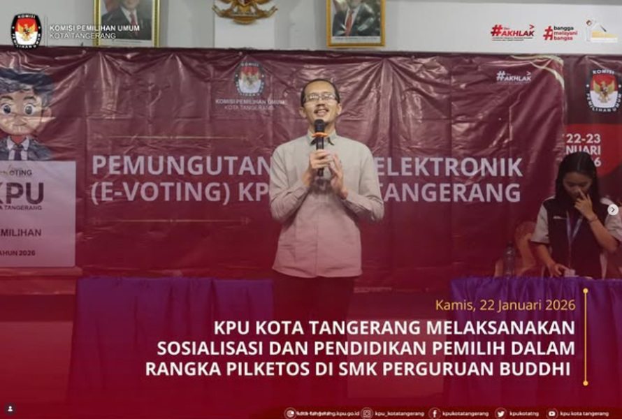 Kota Tangerang — Komisi Pemilihan Umum (KPU) Kota Tangerang kembali menggelar kegiatan Pendidikan Pemilih dengan menyasar kalangan pelajar pada hari Kamis (22/01/2026). Kali ini, kegiatan dilaksanakan di SMK Perguruan Buddhi sebagai upaya meningkatkan pemahaman demokrasi dan partisipasi pemilih pemula. Kegiatan ini bertujuan untuk memberikan edukasi mengenai pentingnya hak pilih, tahapan pemilu, serta peran generasi muda dalam menjaga kualitas demokrasi. Para siswa terlihat antusias mengikuti rangkaian acara yang dikemas secara interaktif melalui pemaparan materi, diskusi, serta sesi tanya jawab. Perwakilan KPU Kota Tangerang yakni Bapak Banani Bahrul selaku Komisioner KPU Kota Tangerang sekaligus Ketua Divisi Hukum menyampaikan bahwa pelajar merupakan segmen penting dalam pendidikan pemilih karena sebagian besar akan menjadi pemilih pemula pada pemilu mendatang. Oleh karena itu, pemahaman sejak dini mengenai proses pemilu yang jujur, adil, dan demokratis sangat penting untuk membentuk pemilih yang cerdas dan bertanggung jawab. Pihak SMK Buddhi menyambut baik kegiatan tersebut dan mengapresiasi inisiatif KPU Kota Tangerang dalam memberikan edukasi politik kepada siswa. Menurut pihak sekolah, kegiatan ini dapat menjadi bekal pengetahuan yang bermanfaat bagi siswa dalam menghadapi peran mereka sebagai warga negara yang aktif. Dengan adanya kegiatan Pendidikan Pemilih ini, KPU Kota Tangerang berharap partisipasi pemilih pemula pada pemilu mendatang dapat meningkat, sekaligus menciptakan generasi muda yang sadar demokrasi dan berperan aktif dalam pembangunan bangsa.