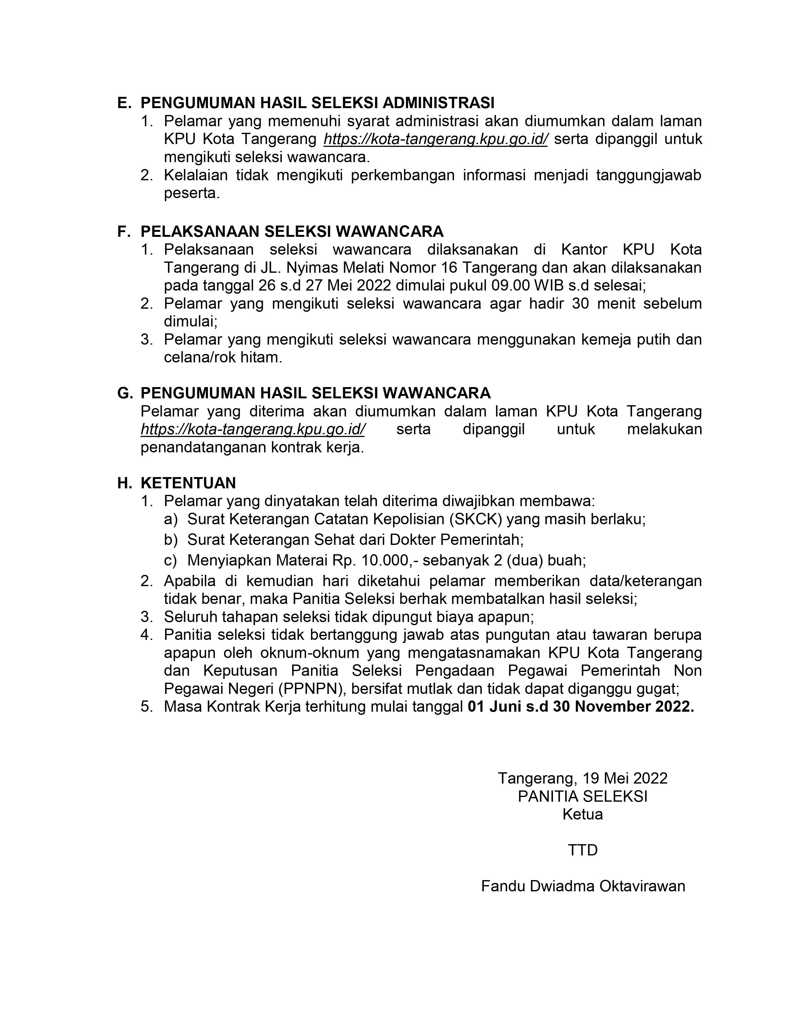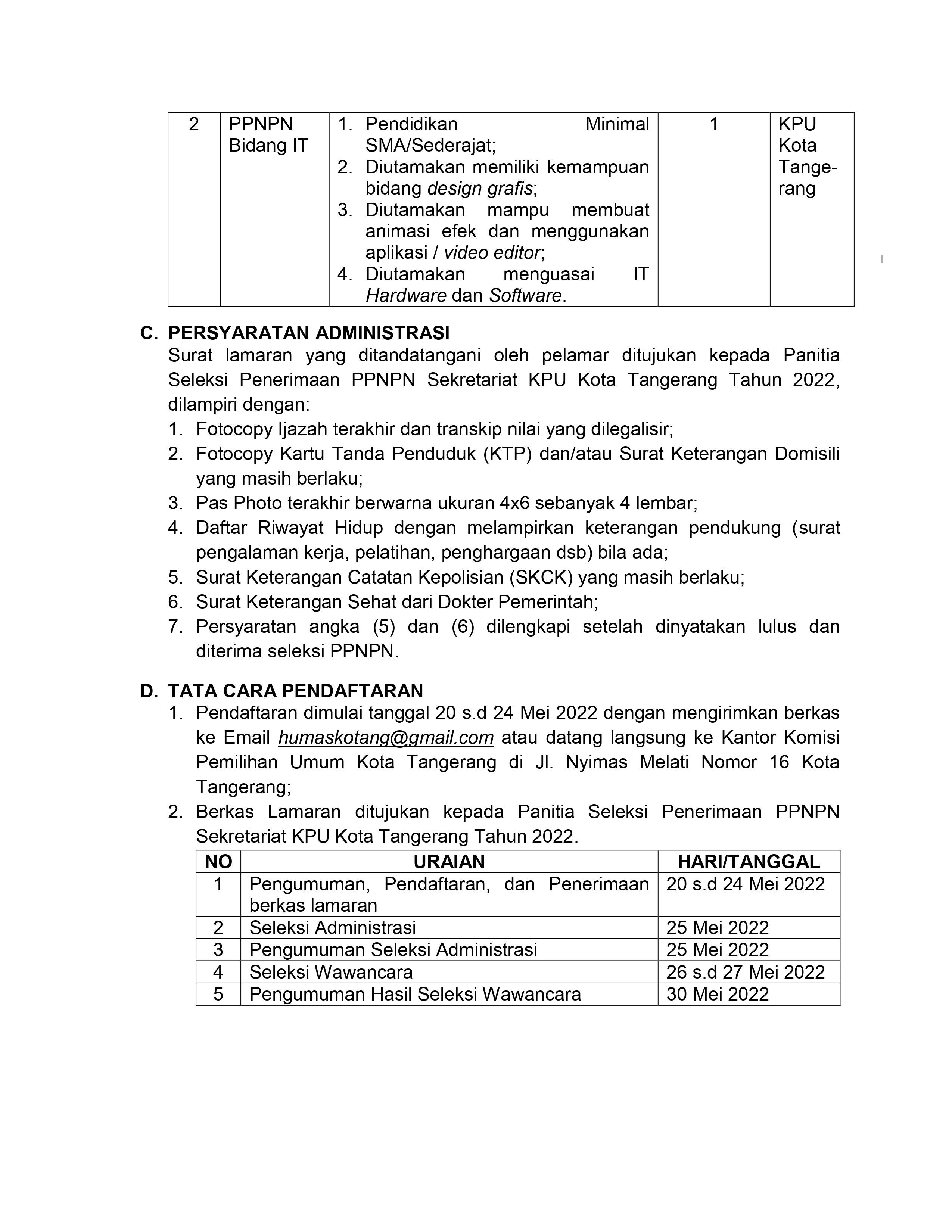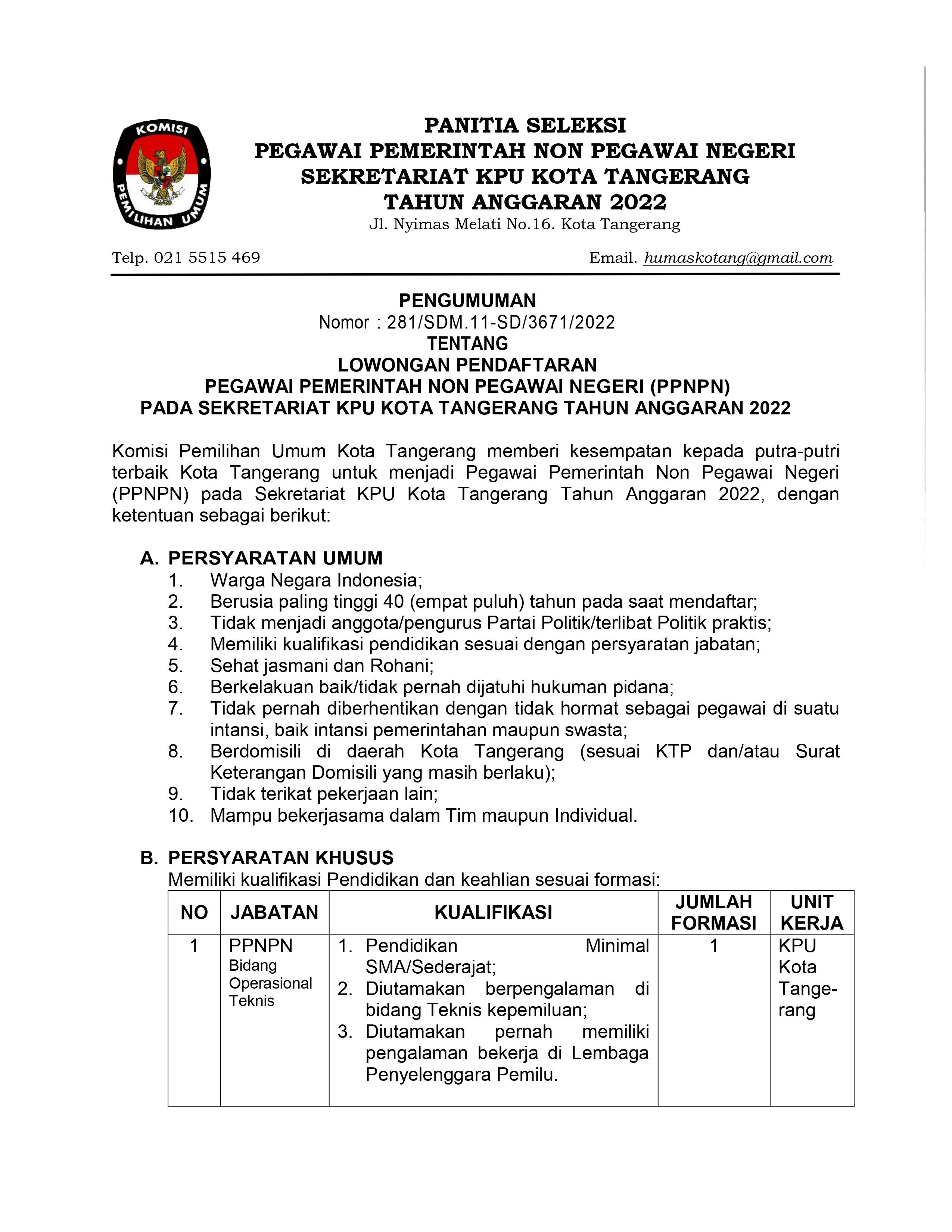 PENGUMUMAN LOWONGAN PENDAFTARAN PEGAWAI PEMERINTAH NON PEGAWAI NEGERI (PPNPN) PADA SEKRETARIAT KPU KOTA TANGERANG