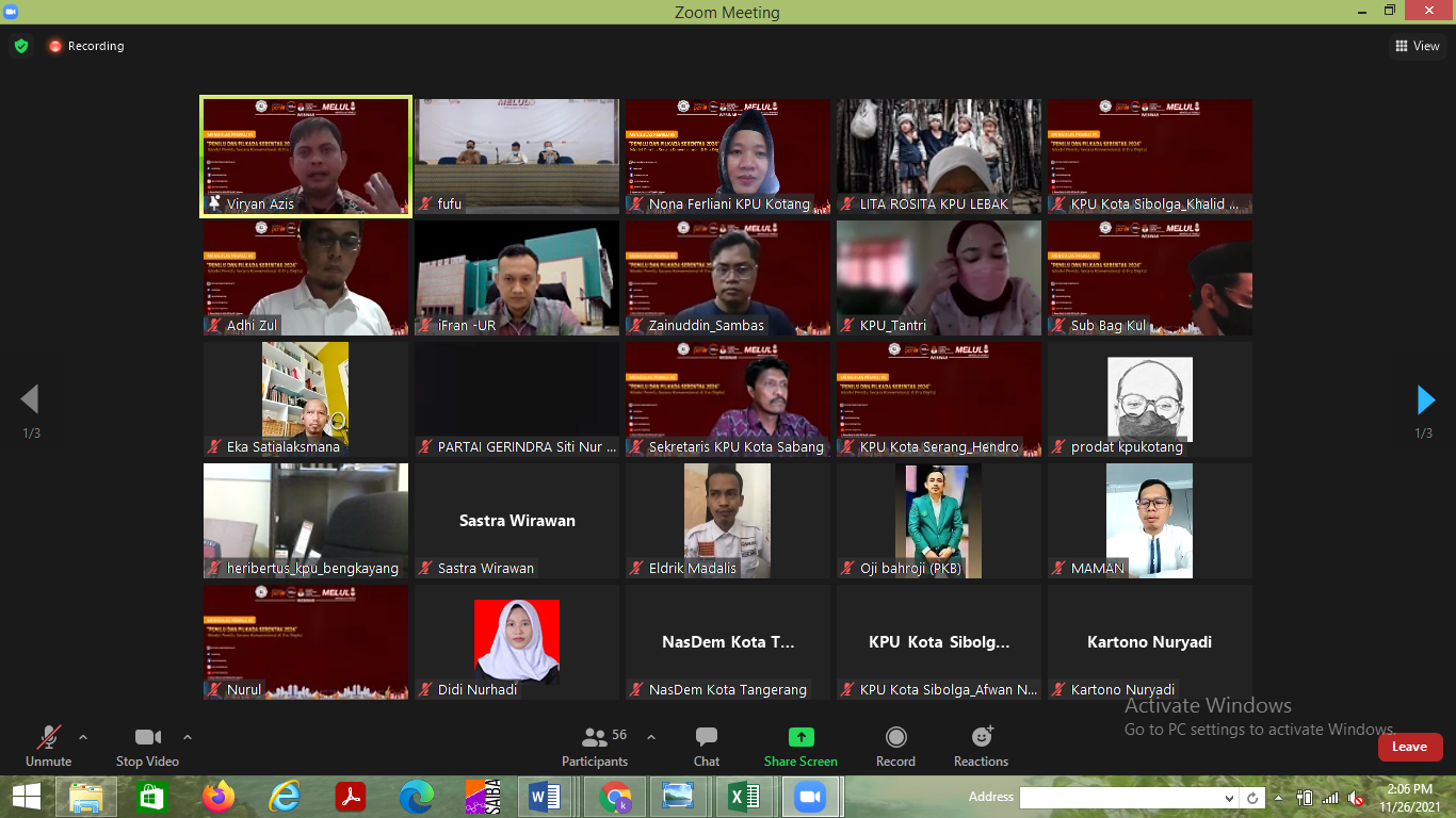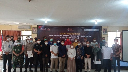 Pada hari ini, Rabu tanggal (22/12/2021) Bertempat di Kantor KPU Kota Tangerang, Komisi Pemilihan Umum Kota Tangerang melaksanakan Rapat Koordinasi Daftar Pemilih berkelanjutan Tahun 2021 di Tingkat Kota Tangerang. Rapat dihadiri oleh Instansi sebagai berikut : KPU Provinsi Banten, Polres Metro Tangerang, Dandim 0506, Bawaslu Kota Tangerang, Disdukcapil Kota Tangerang, Dinas Kesehatan Kota Tangerang, BPS Kota Tangerang, Polres Bandara Soekarno Hatta, Lapas Pemuda Kelas II Tangerang, Lapas Wanita Kelas II Tangerang, SMSI Kota Tangerang, JTR Kota Tangerang dan LO Seluruh Partai Di Kota Tangerang. Hasil rapat Koordinasi yang dilakukan oleh KPU Kota Tangerang menghasilkan sebagai berikut : Rekapitulasi Daftar Pemilih Berkelanjutan dengan jumlah sebanyak : 1.174.454 (Satu juta seratus tujuh puluh empat ribu empat ratus lima puluh empat) dengan Rincian Pemilih Laki-laki : berjumlah 585.212 (Lima ratus delapan puluh lima ribu dua ratus dua belas) pemilih dan pemilih Perempuan berjumlah 589.224 (Lima ratus delapan puluh sembilan ribu dua ratus dua puluh empat) Pemilih tersebar di 13 (tiga belas) Kecamatan Kota Tangerang. KPU Kota Tangerang juga menerima masukan data dari hasil pencermatan data Disdukcapil, Tanggapan masyarakat secara Offline melalui formulir yang disebar di se-Kecamatan Kota Tangerang dan tanggapan masyarakat secara Online di Aplikasi SITANGKOT dan Aplikasi Indap Kegiatan ini berjalan lancar dan tetap menjalankan prokes yang ada.