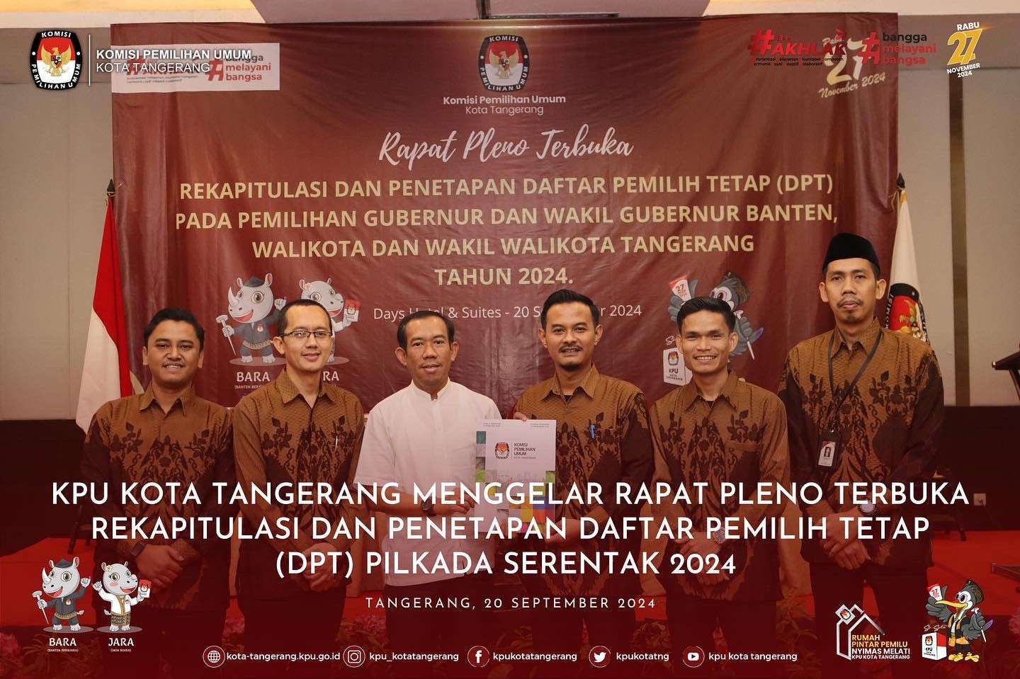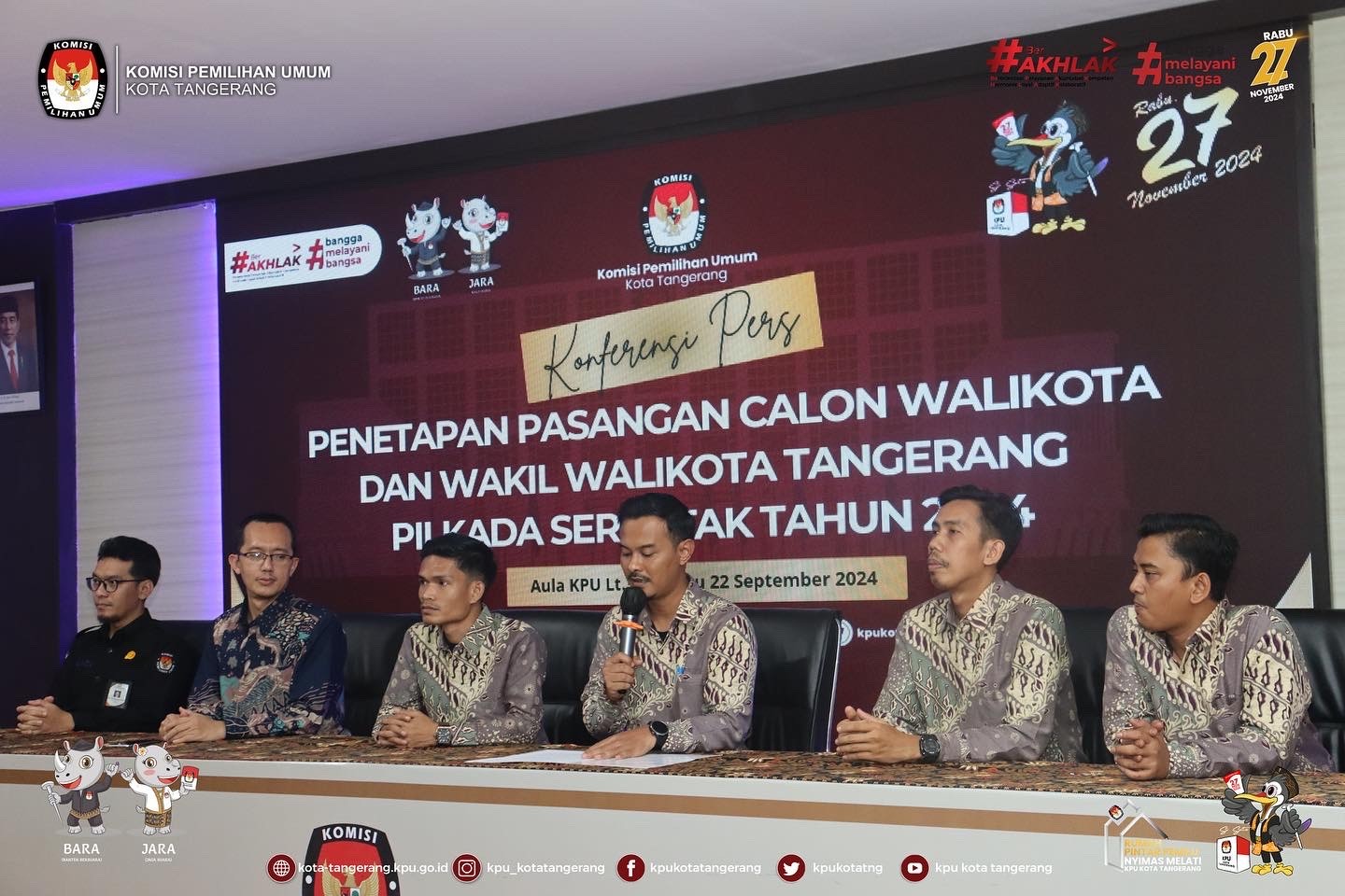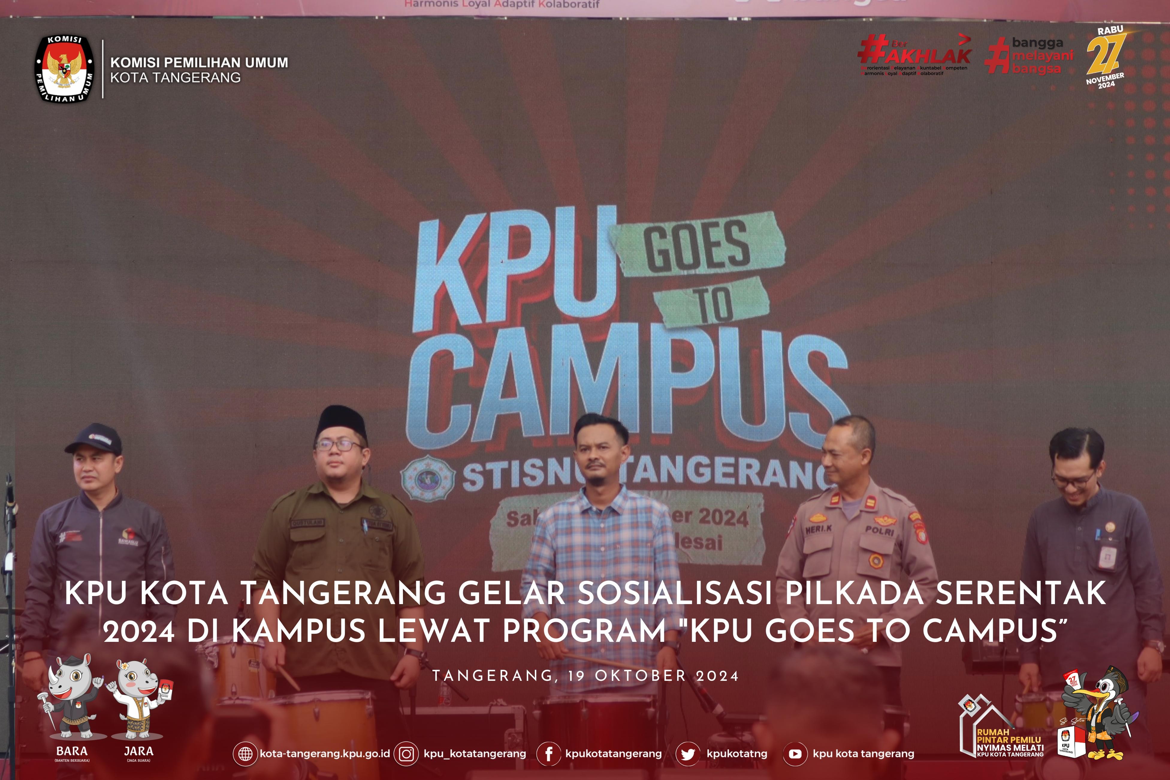 KOTA TANGERANG – KPU Kota Tangerang melakukan sosialisasi Pilkada Serentak 2024 melalui program “KPU Goes to Campus” di STISNU Nusantara Tangerang, Sabtu, 19/10/2024. Acara ini bertujuan untuk mengajak generasi muda memahami pentingnya partisipasi aktif dalam proses pemilihan kepala daerah. Dengan adanya program ini, KPU Kota Tangerang berharap generasi muda semakin sadar akan pentingnya suara mereka dan berani mengambil bagian dalam menentukan masa depan Kota Tangerang. Ketua KPU Kota Tangerang, Qori Ayatullah, dalam sambutannya mengungkapkan, “Kegiatan ini merupakan langkah strategis untuk melibatkan generasi muda dalam dunia politik. Dengan pemahaman yang baik tentang Pilkada, kami berharap mereka dapat berkontribusi secara aktif dalam setiap tahapan pemilihan.” Dr. H. Muhammad Qustulani, MA.HUm., Ketua STISNU Nusantara Tangerang, juga menambahkan, “Kami menyambut baik inisiatif KPU ini. Pendidikan politik bagi mahasiswa sangat penting untuk membentuk pemilih yang cerdas dan bertanggung jawab. Dengan kegiatan ini, kami berharap mahasiswa dapat lebih memahami hak dan kewajiban mereka sebagai warga negara.” Sementara Ahmad Syailendra, mantan Ketua KPU Kota Tangerang (2018-2023), menekankan pentingnya keterlibatan generasi muda dengan mengatakan, “Partisipasi pemilih muda sangat krusial untuk masa depan demokrasi kita. Mereka adalah agen perubahan yang dapat membawa suara dan aspirasi baru ke dalam sistem politik.” Program ini dimeriahkan dengan hiburan dari Jege dan penampilan spesial dari Rony Parulian, Bunga Tiara, Samsaka, dan Puskesmas Hore! Peserta juga berkesempatan memenangkan doorprize menarik, menjadikan acara ini lebih interaktif dan menyenangkan. Kegiatan ini diharapkan dapat memotivasi mahasiswa untuk lebih siap berpartisipasi dalam Pilkada, dari pemahaman calon hingga dampak kebijakan yang dihasilkan. Acara ini dihadiri langsung oleh Ketua dan Anggota KPU Kota Tangerang, Ketua dan Anggota Bawaslu Kota Tangerang, serta perwakilan dari Polres Metro Tangerang Kota dan Dandim 05/06, menunjukkan komitmen semua pihak dalam mendukung kesuksesan Pilkada Serentak 2024.