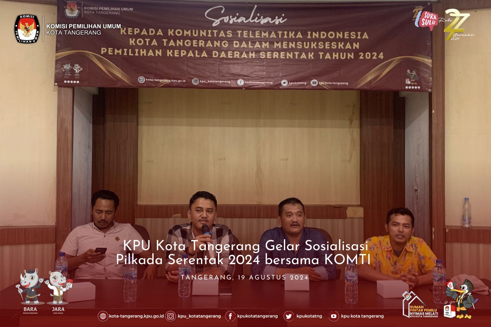 KOTA TANGERANG – Komisi Pemilihan Umum (KPU) Kota Tangerang menggandeng Pengurus Cabang Nahdlatul Ulama (PCNU) Kota Tangerang dalam upaya meningkatkan partisipasi masyarakat dalam Pemilihan Kepala Daerah (Pilkada) Serentak 2024. Kegiatan sosialisasi ini berlangsung di Pondok Pesantren (Ponpes) Roudlatussalam, Kota Tangerang, Jum’at, 23/08/2024, Acara yang dihadiri langsung oleh Ketua KPU Kota Tangerang, Qori Ayatullah, dan Anggota KPU Kota Tangerang, Banani Bahrul, bertujuan untuk memberikan pemahaman kepada masyarakat, terutama santri dan warga sekitar, mengenai pentingnya partisipasi aktif dalam Pilkada yang akan datang. Dalam sambutannya, Qori Ayatullah menekankan bahwa Pilkada Serentak 2024 merupakan momentum penting bagi warga Kota Tangerang untuk menentukan masa depan daerah. “Partisipasi masyarakat sangat krusial dalam memastikan pemilihan yang jujur, adil, dan demokratis. Kami berharap melalui sosialisasi ini, masyarakat, khususnya para santri, dapat menjadi agen perubahan dan turut serta dalam menjaga proses demokrasi di daerah kita,” ujarnya. Banani Bahrul menambahkan bahwa kolaborasi antara KPU dan PCNU Kota Tangerang ini merupakan salah satu langkah strategis untuk menjangkau berbagai lapisan masyarakat. “Kami percaya pesan-pesan yang disampaikan melalui kegiatan ini akan lebih mudah diterima oleh masyarakat luas, mengingat peran penting pesantren dan organisasi keagamaan dalam kehidupan sehari-hari,” ungkapnya. Sementara itu, Ketua PCNU Kota Tangerang menyampaikan apresiasinya atas inisiatif KPU dalam mengajak organisasi keagamaan untuk turut serta menyukseskan Pilkada. “Kami siap mendukung penuh upaya KPU dalam memastikan Pilkada Serentak 2024 berjalan dengan lancar dan damai,” katanya. Sosialisasi ini diharapkan dapat meningkatkan kesadaran masyarakat akan pentingnya menggunakan hak pilih serta meminimalisir potensi golput (golongan putih) di Kota Tangerang. KPU Kota Tangerang juga mengajak seluruh elemen masyarakat untuk tetap menjaga kondusivitas dan kebersamaan selama proses Pilkada berlangsung.