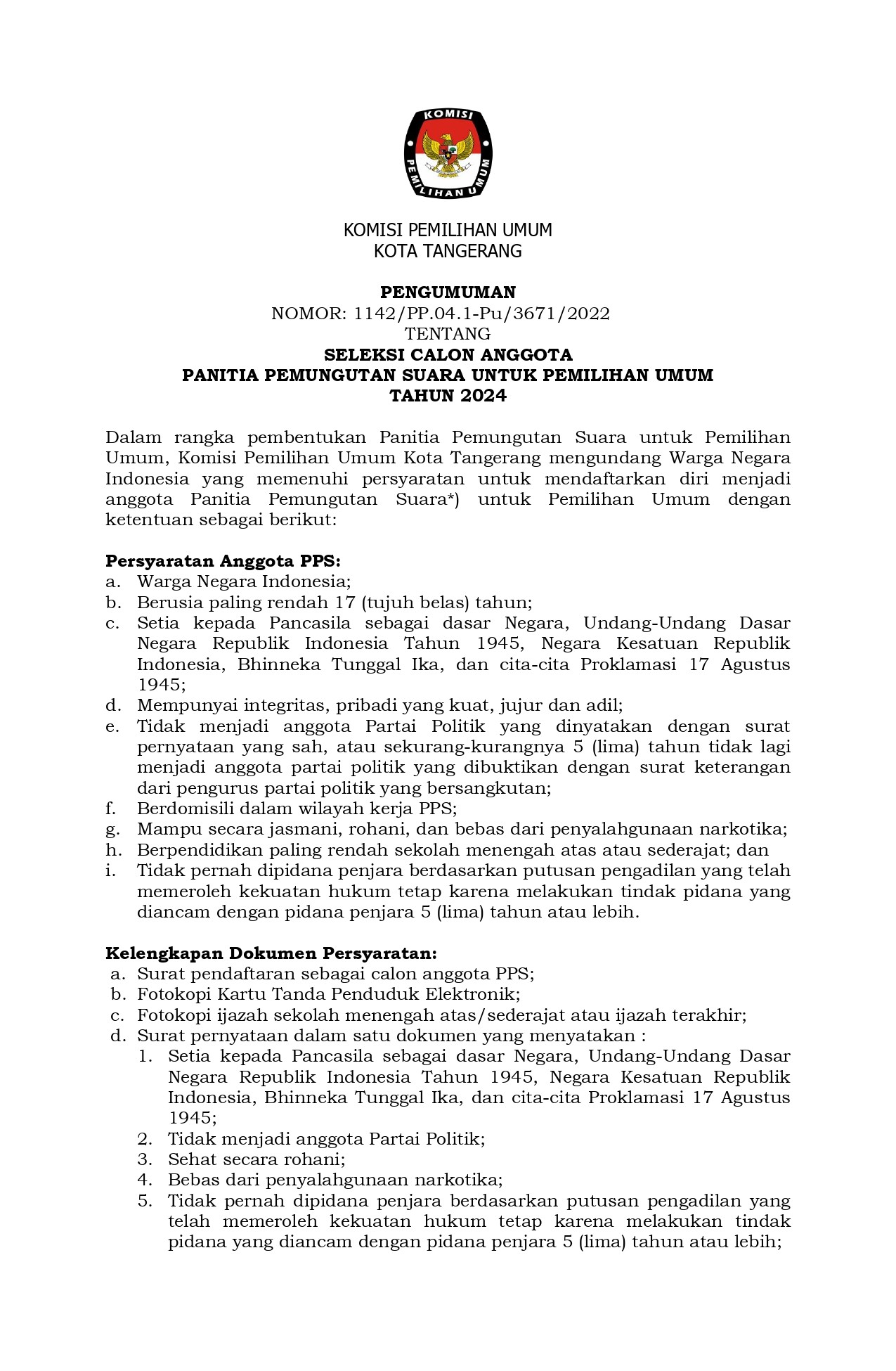 PENGUMUMAN LOWONGAN PENDAFTARAN TENAGA PENDUKUNG SEKRETARIAT PANITIA PEMILIHAN KECAMATAN (PPK) PADA SEKRETARIAT KOMISI PEMILIHAN UMUM KOTA TANGERANG TAHUN 2023, KLIK DISINI. Untuk file Pendaftaran silakan Unduh.