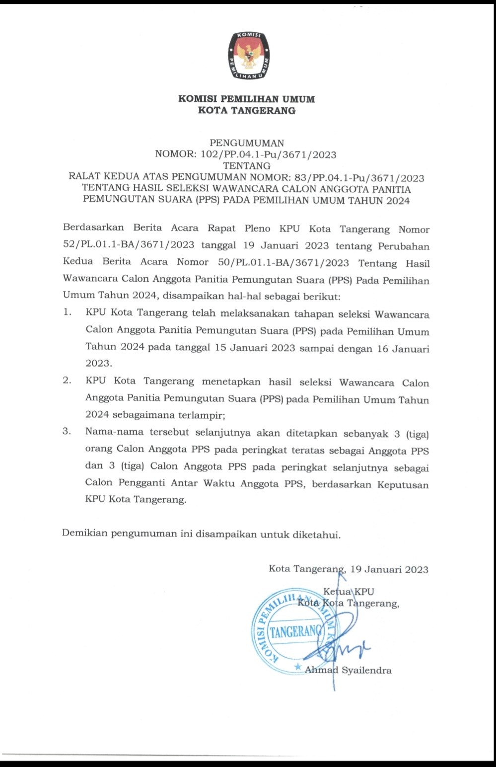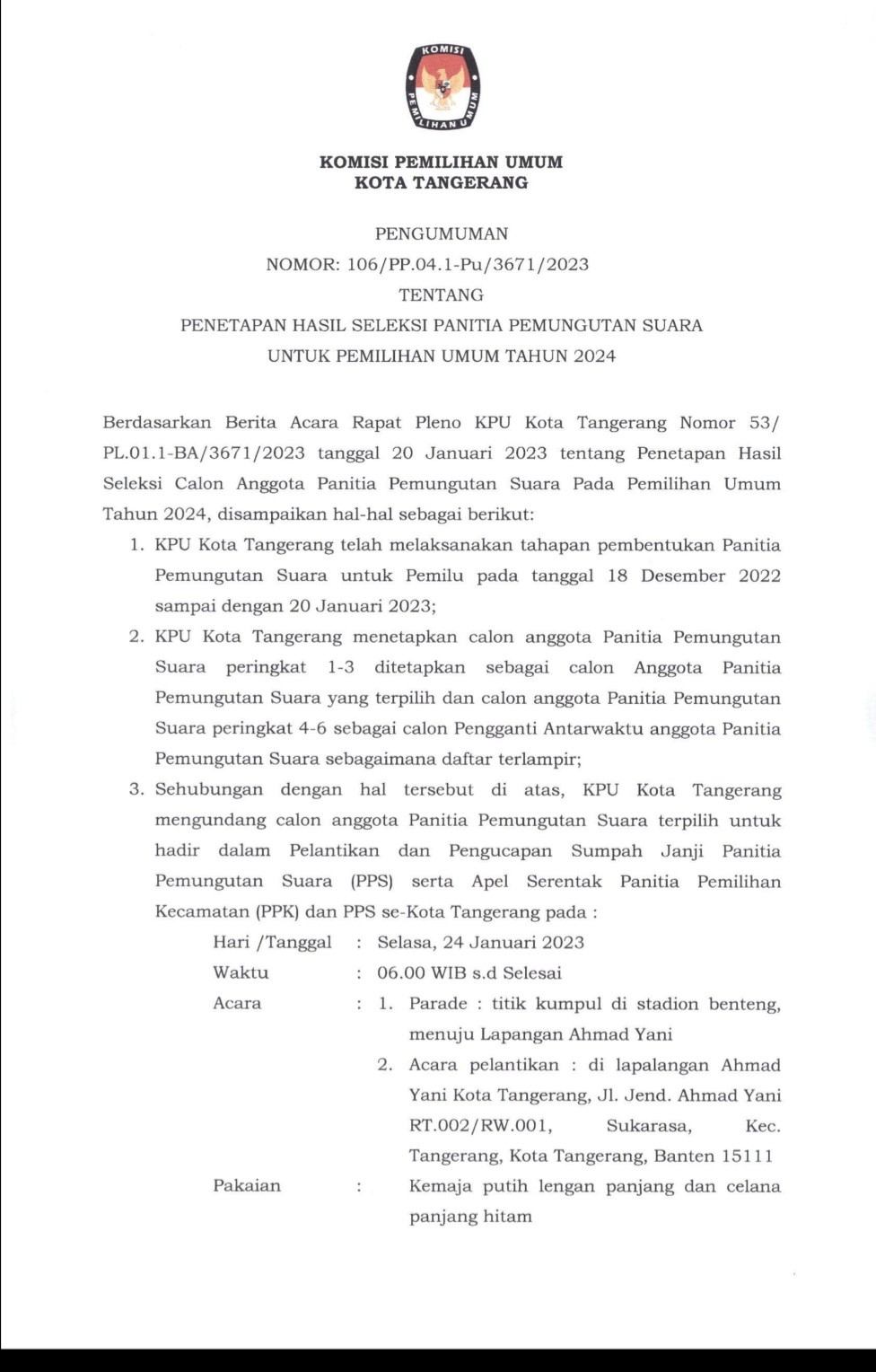 RALAT ATAS PENGUMUMAN NOMOR: 45/PP.04.1-Pu/3671/2023 TENTANG PENETAPAN HASIL SELEKSI TERTULIS PANITIA PEMUNGUTAN SUARA UNTUK PEMILIHAN UMUM TAHUN 2024, KLIK DISINI